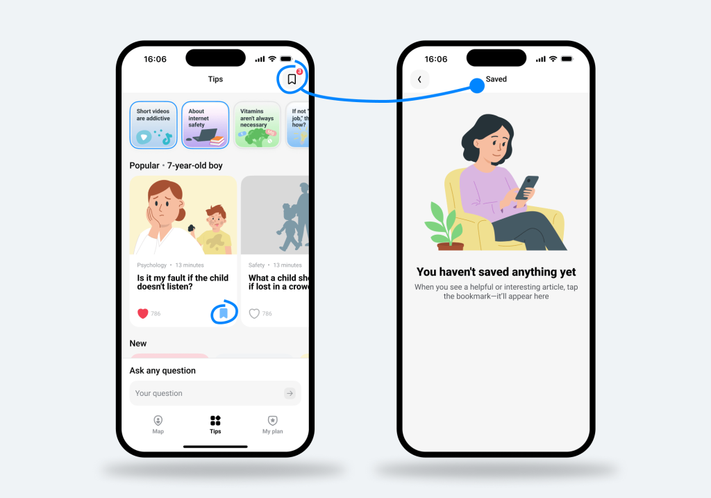 Having some time for yourself throughout the day is difficult, especially with little ones. But even if you have 5 (or a glorious 20 minutes), you can use that time to dive into quick parenting tips and advice with the new Tips and Stories section on the Findmykids app. So you can deal with those challenging parenting moments with confidence.