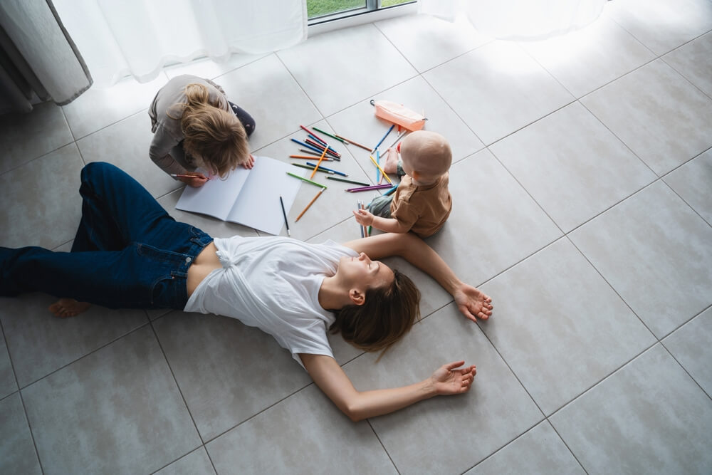 The principle of horizontal parenting is that parents are allowed to rest and still connect with their children. They don’t need to be performing 24/7 to be a good parent. Lying on the floor while still playing with your children is a form of parenting that lets you have fun with your kids.